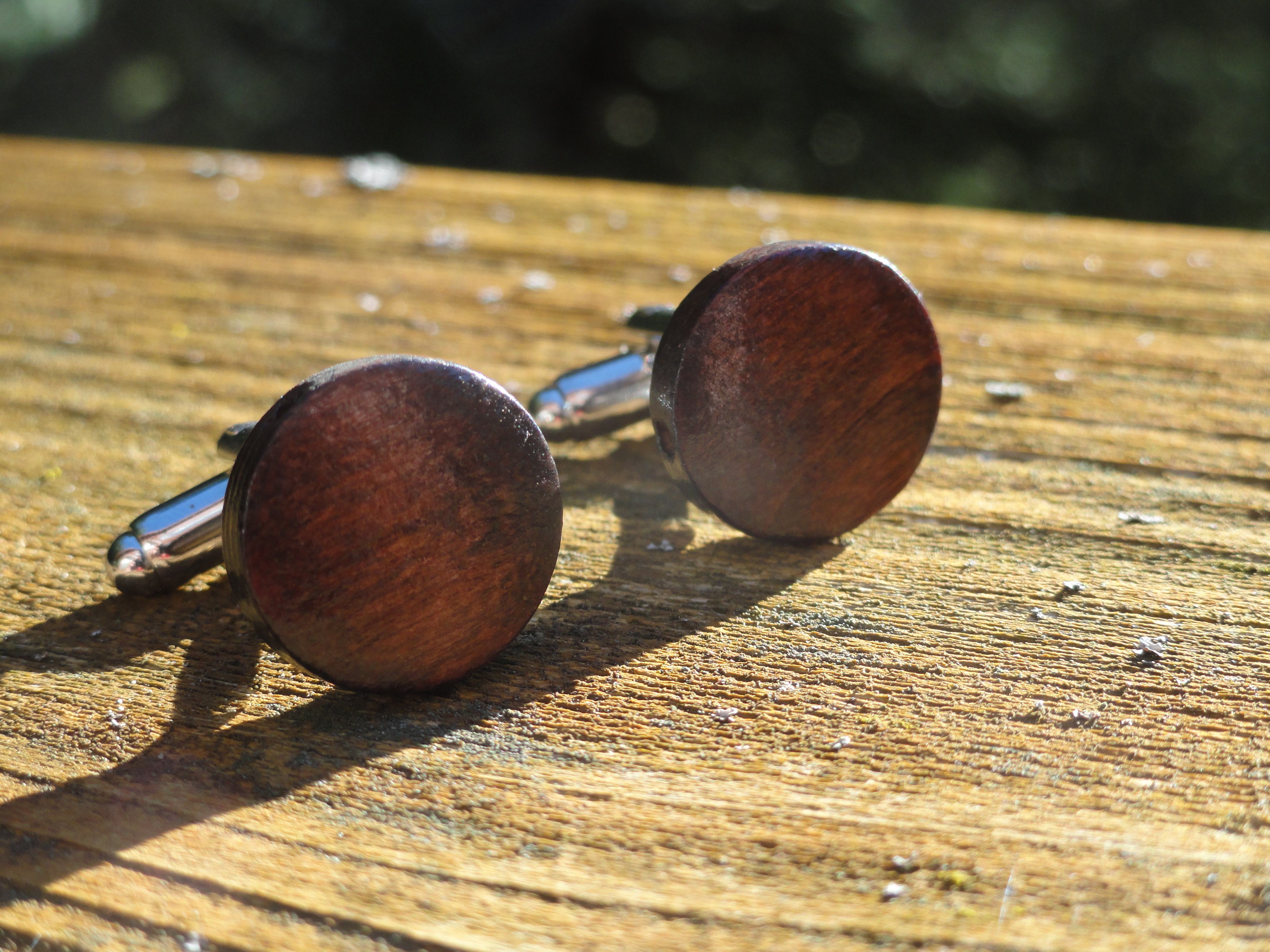 Bolivian Rosewood Cufflinks, Lapel Pin, Tie Bar and Earrings