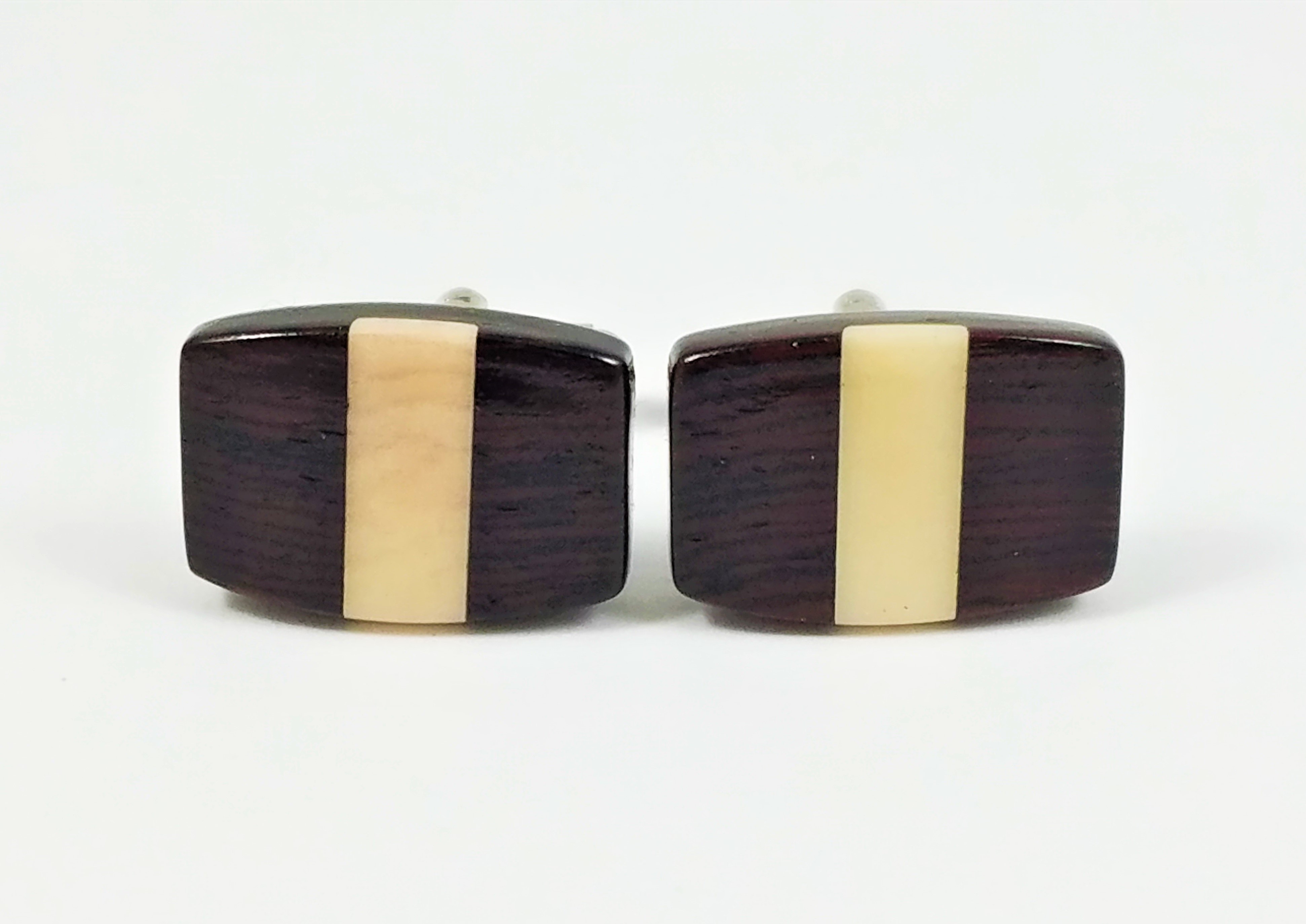 Bolivian Rosewood and Tagua Nut Ivory Cufflinks, Lapel Pin, Tie Bar and Earrings